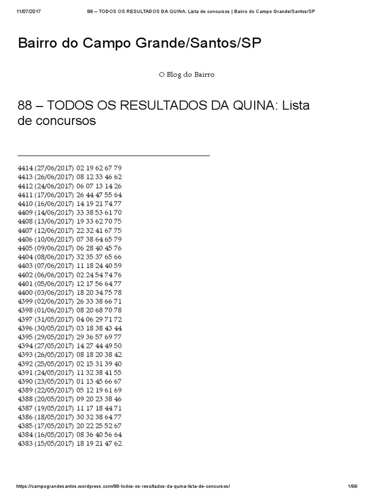 88 Todos Os Resultados Da Quina Lista De Concursos Bairro Do Campo Grande Santos Sp Bancos Mercados Financeiros